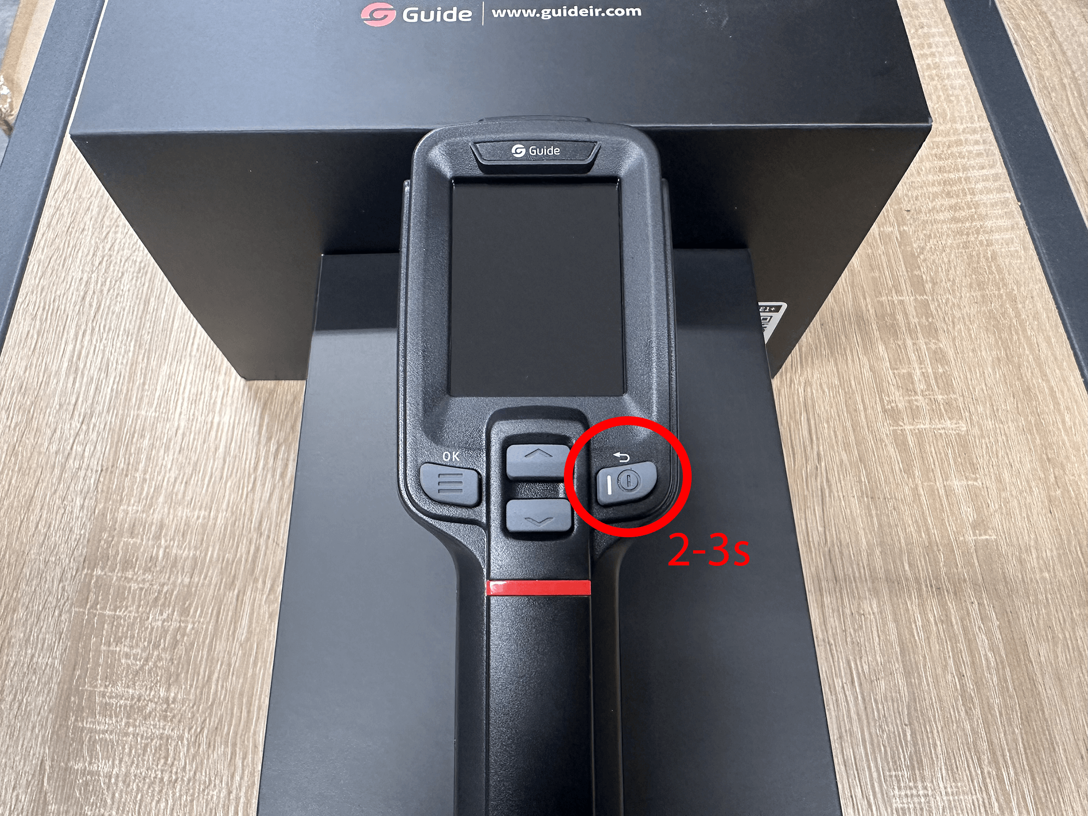 Termokameru zapnete dlouhým podržením tlačítka ON/OFF. Po krátkém spuštění systému je kamera okamžitě připravena k použití – není nutné žádné složité nastavování.