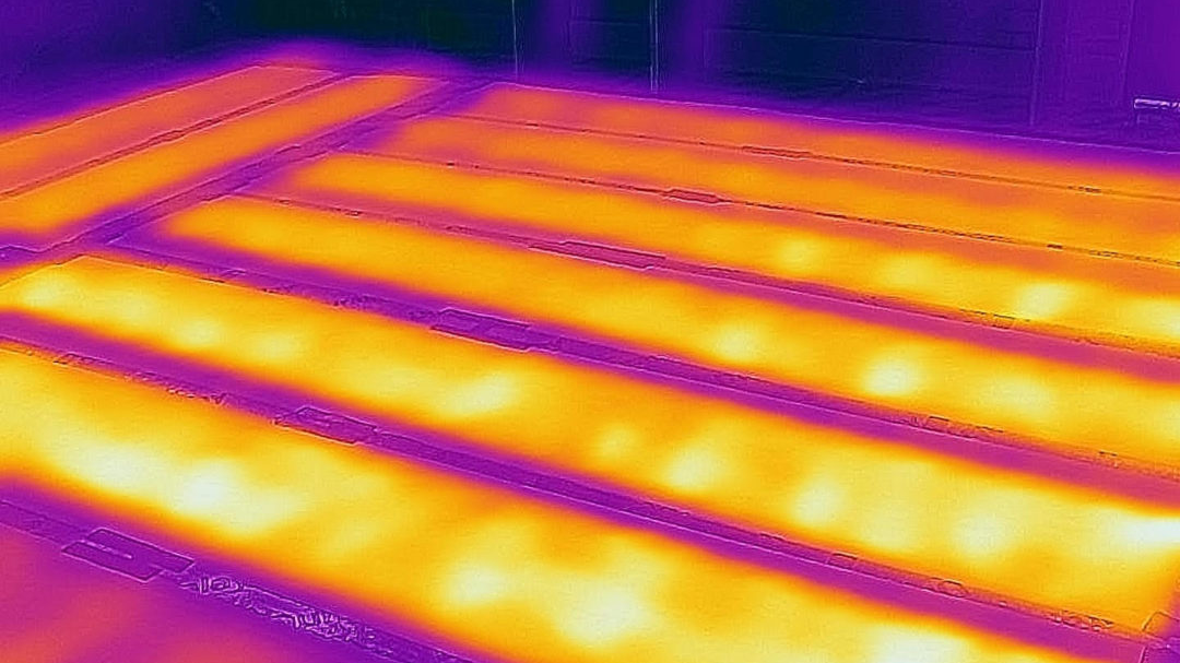 Při rekonstrukci potřeboval majitel zjistit, kudy vedou trubky podlahového topení. Termokamera přesně zobrazila jejich polohu a zabránila jejich poškození při vrtání.