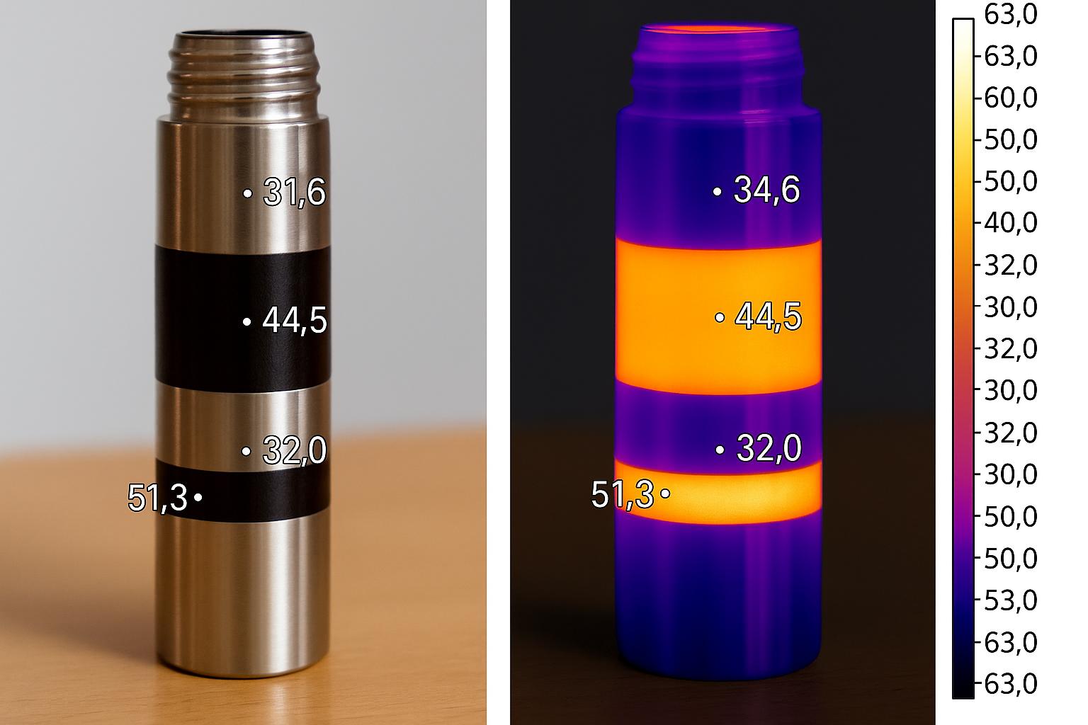 Představ si měření kovového potrubí. Bez jakékoliv úpravy ti termokamera ukáže například 35 °C. Hodnota vypadá logicky, ale není správná.