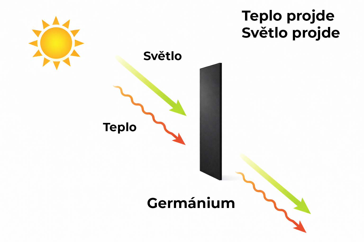 Germanium je speciální materiál, který dokáže infračervené záření v pásmu LWIR propouštět. Díky tomu může infračervené záření projít objektivem a dopadnout na senzor termokamery.