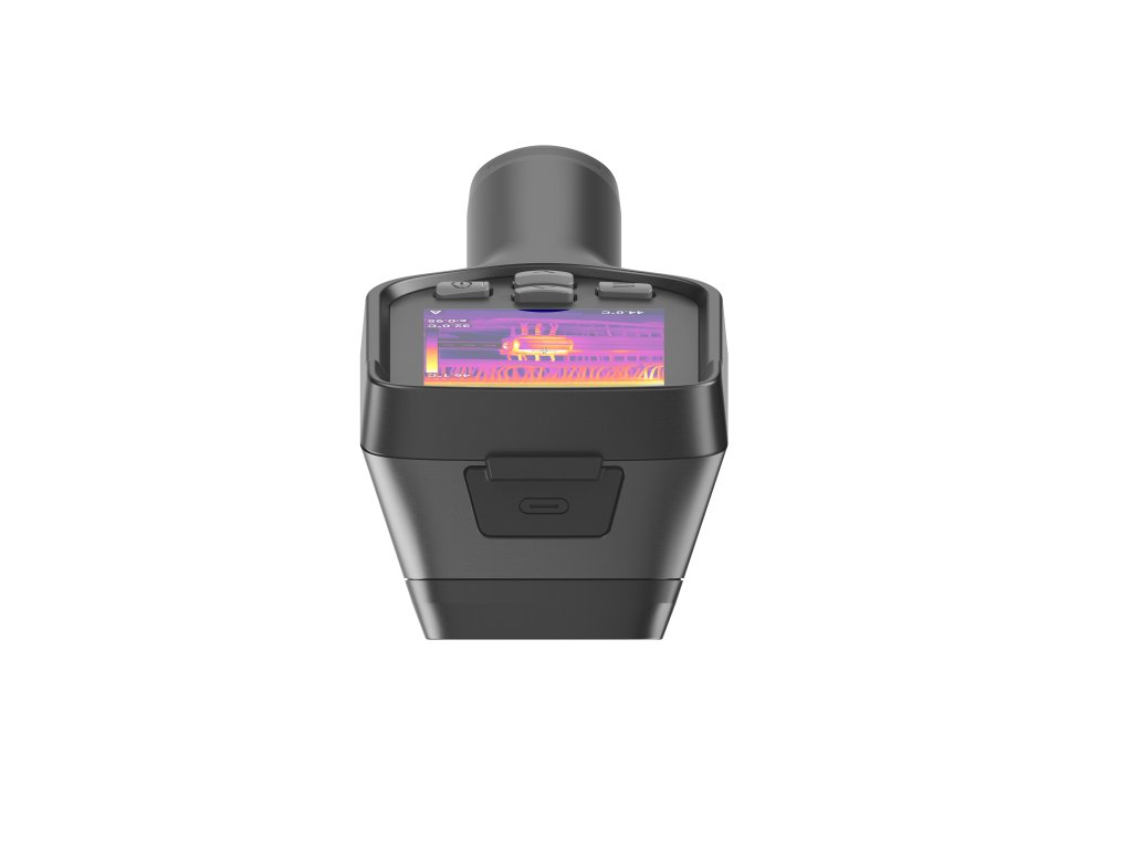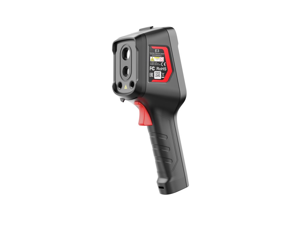 Kamera je vybavena jasným 3,5″ displejem, díky kterému je obraz dobře čitelný i venku nebo v provozech se silným okolním osvětlením. Integrovaná 2MP viditelná kamera umožňuje pořizovat snímky kombinující reálný a tepelný obraz, což zlepšuje dokumentaci a orientaci v terénu. Wi-Fi, mobilní aplikace, streamování živého videa a OTA aktualizace rozšiřují možnosti analýzy i sdílení výsledků. Robustní konstrukce odolná pádu z výšky 2 metrů a až 12hodinová výdrž baterie dělají z E3 nástroj připravený na celodenní práci v náročných podmínkách.